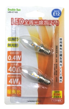 LED全周光燈泡E12黃光 2入 LED-C7-62