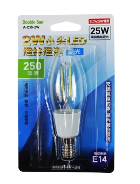 2W小型LED燈絲燈泡E14(白光) A-C35-2W