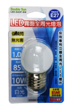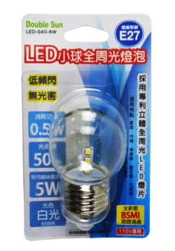 (朝日)E27(白)小球全周光燈泡 -LED-G40-6W
